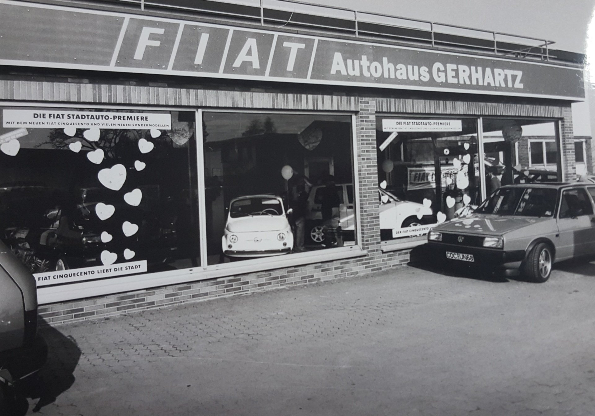 Auto-Gerhartz wird Fiat- und Fiat Transporter Vertragshändler. Außerdem wird eine BP-Tankstelle auf dem Gelände des Autohauses eröffnet.